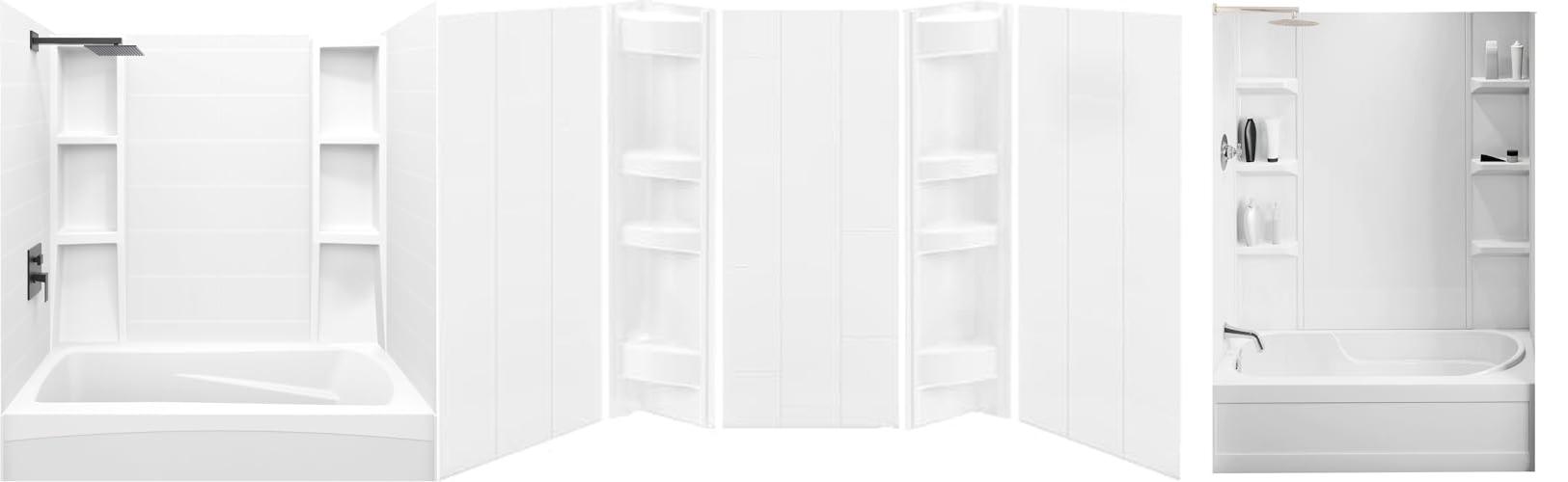 Noah William Home White Acrylic Tub Wall Surround 32"x 60"x 58" - Waterproof, Easy-to-Install, Two Shelf Units Kit Included - Bathtub Wall Surround Panels - Vertical Pattern, Dynamic Shelves