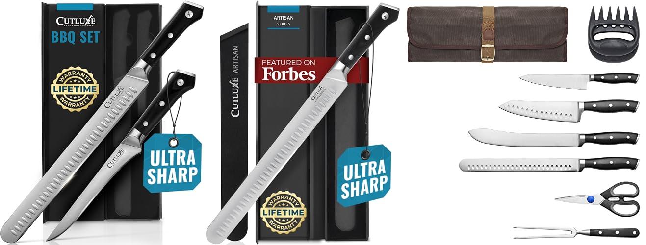 1. Cutluxe BBQ Carving Knife Set – Brisket Slicing and Boning Knife for Meat Cutting – Professional Knife with Razor Sharp German Steel