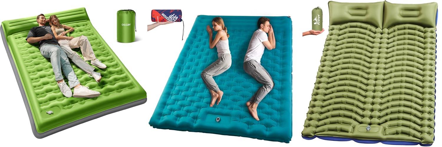 3. Pretyw Double Sleeping Pad for Camping – Ultralight Camping Mattress with Pillow