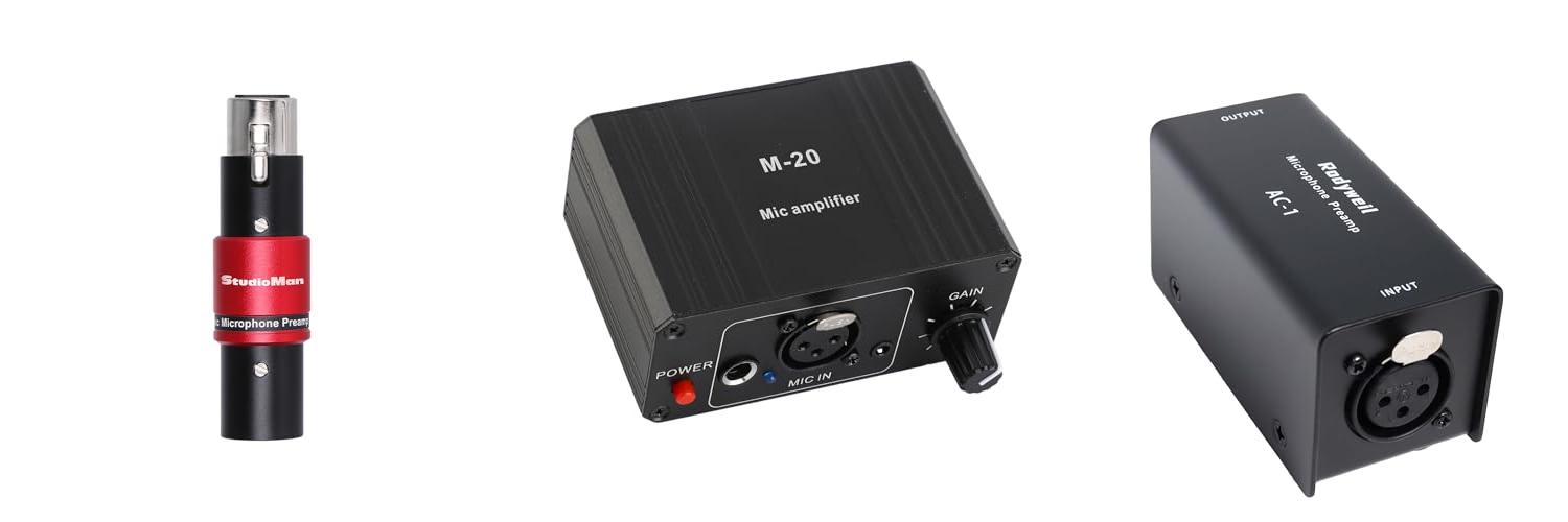 3. Rodyweil Microphone In Line Preamp Gain Booster for Dynamic and Ribbon Mic