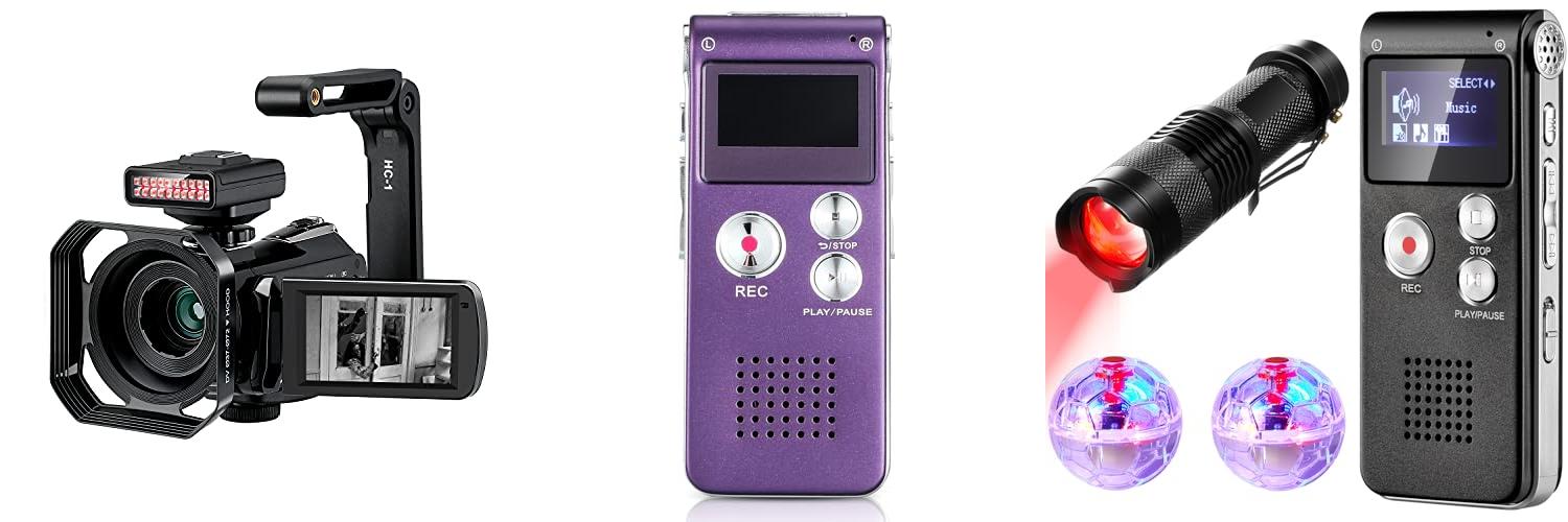 3. Relaxweex 4 Pcs Ghost Hunting Equipment Kit Include 1 Red Light Night Vision Flashlight for Ghost Hunting Camera Camcorder 1 Digital Voice Recorder 2 LED Light up Pet Cat Balls Paranormal Equipment