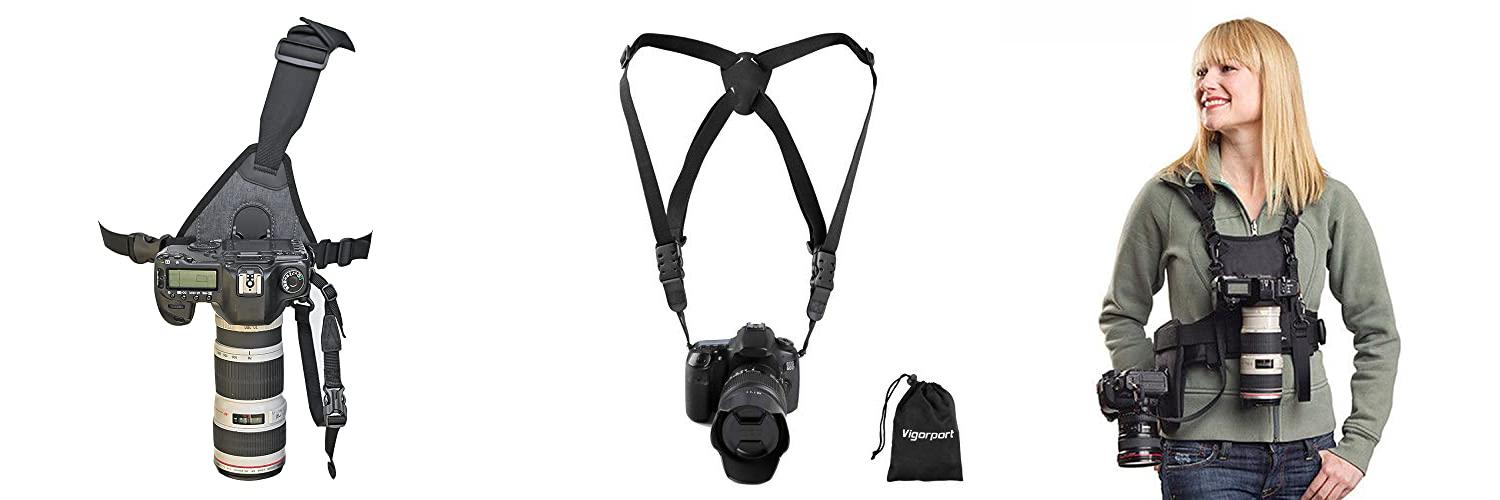 This camera harness is a good accessory for photographers. It makes carrying your camera easier and more comfortable.