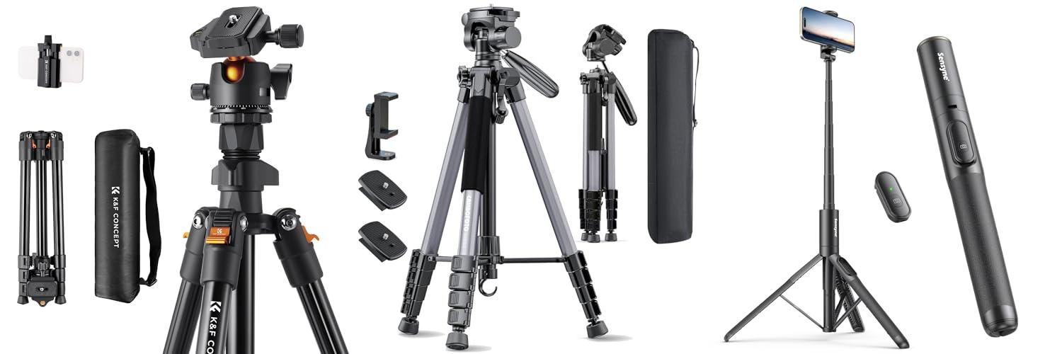 The K&F Concept 64 inch Camera Tripod is a great choice for photographers. It is made for travel and outdoor use. This tripod is lightweight and easy to carry. It has a 360-degree ball head for smooth movements. You can use it with many cameras and devices. It also comes with a cellphone clip for live streaming and vlogging.