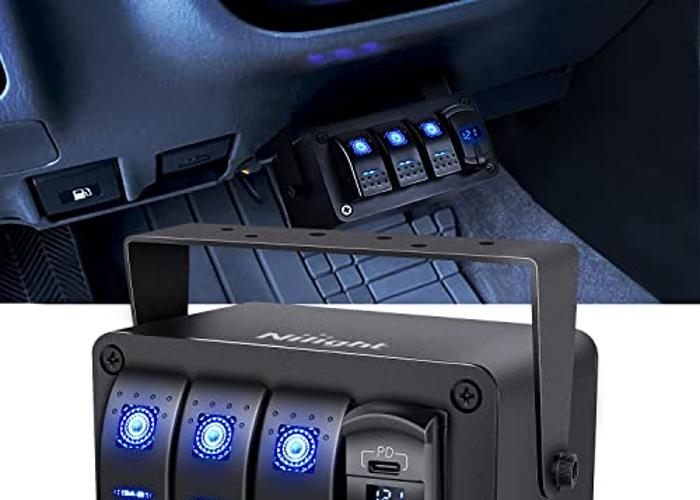 1. Nilight 3 Gang Rocker Switch Panel Blue Backlit with PD Type C and USB Charger Voltmeter Waterproof 12V 24V DC Rocker Switch with Night Glow Stickers for Car Trucks Boats RVs