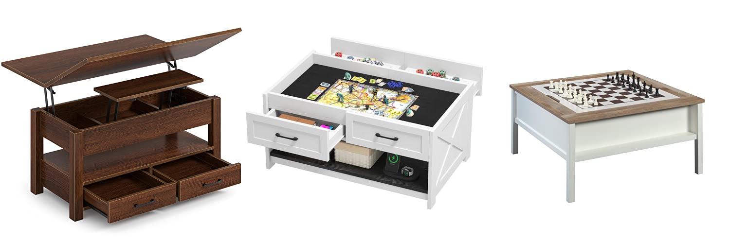 A regular coffee table just doesn’t cut it for serious board gaming. Board game coffee tables are designed with gamers in mind. They offer more space for your sprawling games, keep pieces from rolling off, and often have handy storage.