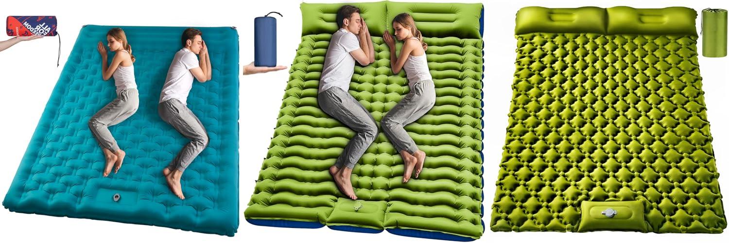 4. Double Sleeping Pad for Camping- Self Inflating 4″” Extra-Thick with Pillow Built-in Foot Pump Inflatable Sleeping Mat for Backpacking