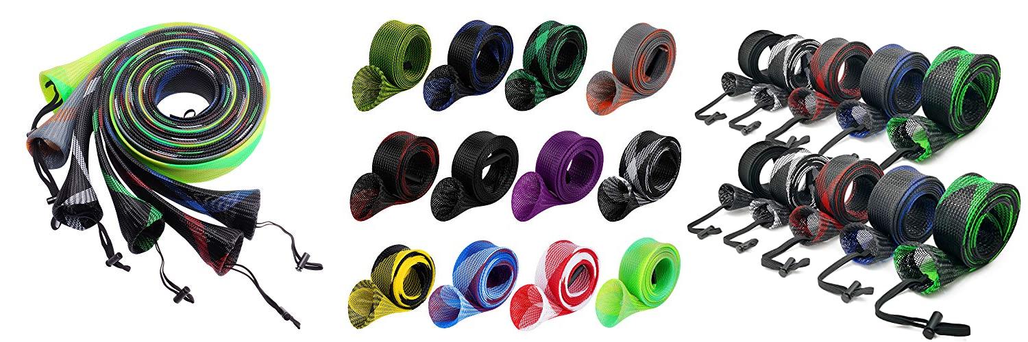 1. SF Fishing Spinning Rod Socks Braided Mesh Rod Sleeve Cover Protector Pole Gloves Six Colors 6PCS Fit Spinning Rod 6-1/2FT to 7-1/2FT