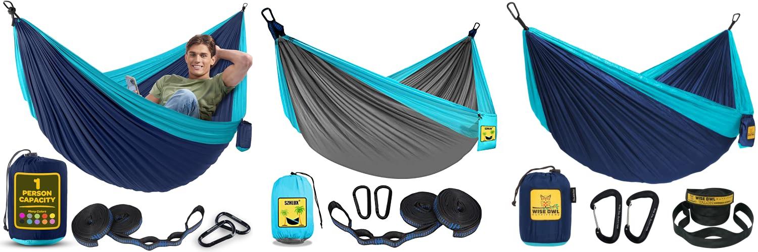 2. SZHLUX Camping Hammock Double & Single Portable Hammocks with 2 Tree Straps and Attached Carry Bag