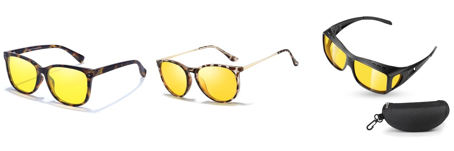 - They say goodbye to blinding headlights with special yellow, anti-glare lenses.