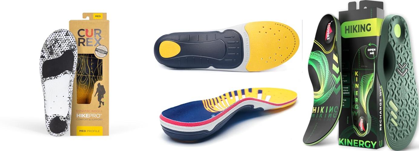 1. CURREX HikePro Insoles for Hiking Boots & Shoes – Shock Absorbing Inserts to Help Reduce Fatigue and Increase Performance – Anti-Slip Heel Surface for Stability – for Men & Women – High Arch