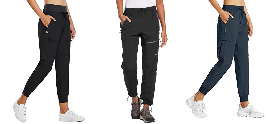 1. baleaf Women’s Joggers Lightweight Hiking Pants High Waist 5 Zipper Pockets Quick Dry Travel Athletic UPF50+ Black L