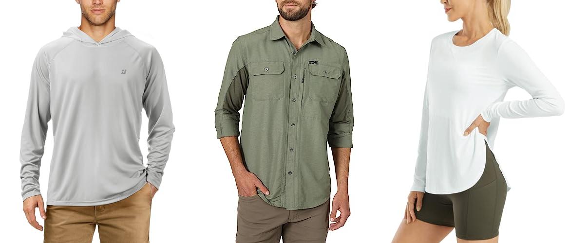 - Cool Weather Hiking: A merino wool blend or a shirt with a hood is a great choice.