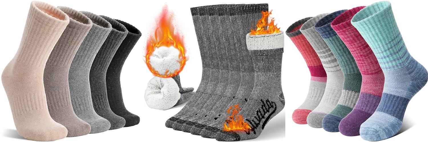 5. Merino Wool Socks for Women Hiking Warm Winter Thick Boot Thermal Cozy Crew Work Soft Ladies Socks Gift 5 Pack Stocking Stuffers( Purple/Blue/Black/Grey/Dull Grey)