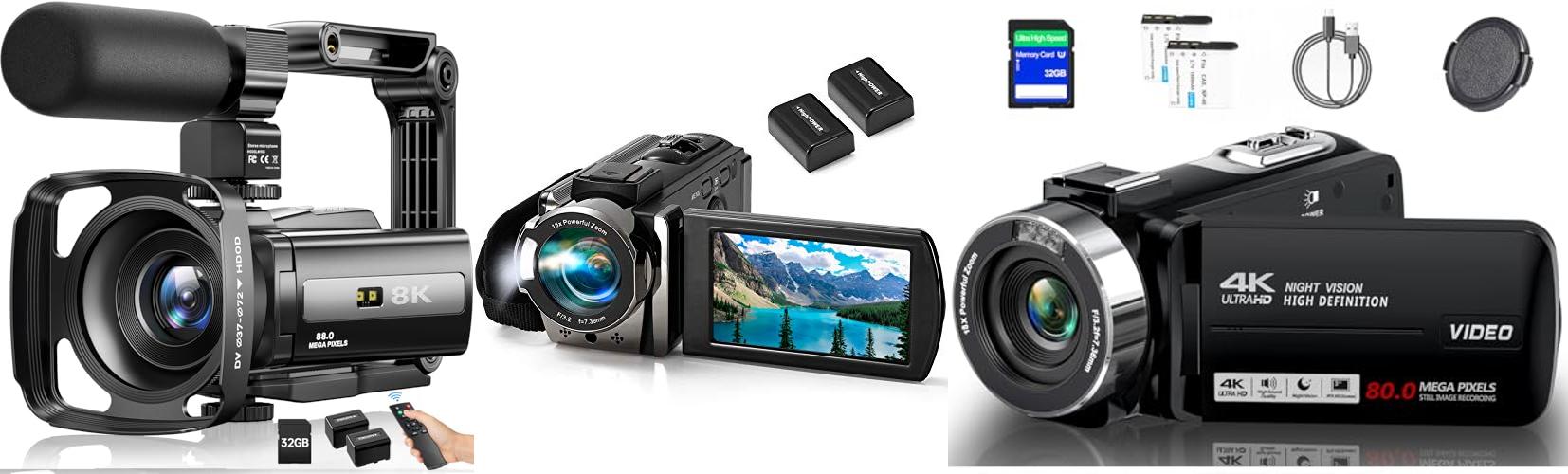 - Video Quality: Most camcorders shoot in HD (High Definition). Some offer 4K, which is even clearer. Look for a camcorder that records sharp, bright video.