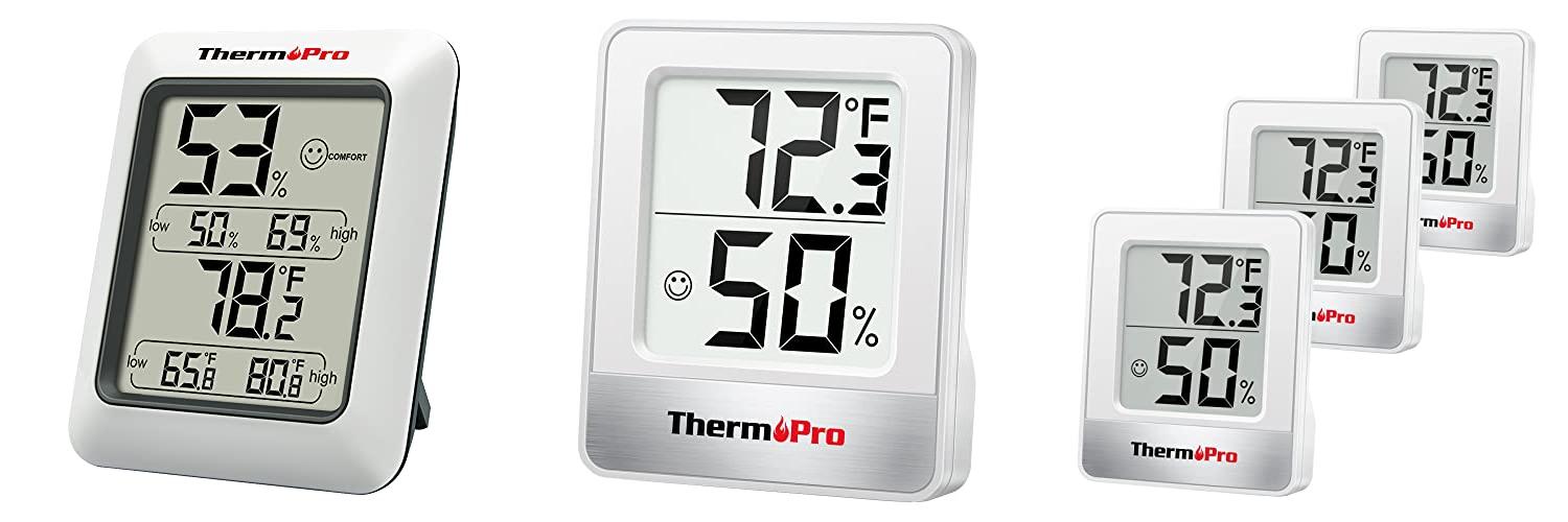 The ThermoPro TP50 Digital Hygrometer is a handy gadget that helps you keep tabs on your indoor environment. It tells you the temperature and how humid it is, so you can make sure your home is just right.