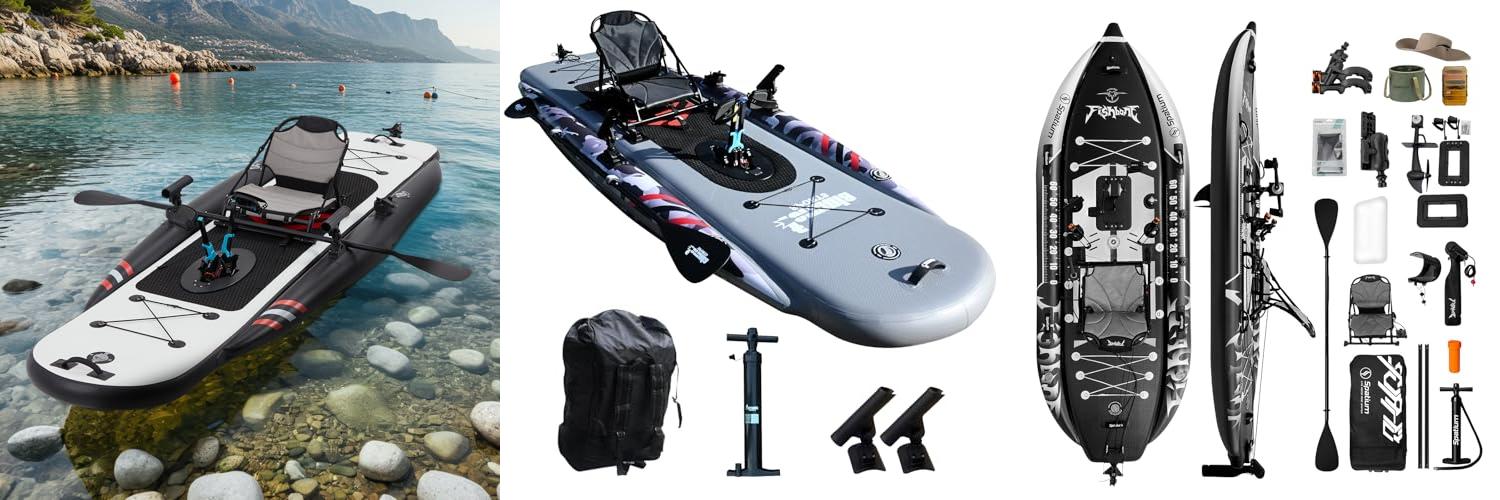 The Spatium Fishing Pedal Inflatable Kayak is a great choice for fishing. It offers a lot of features to improve your time on the water.