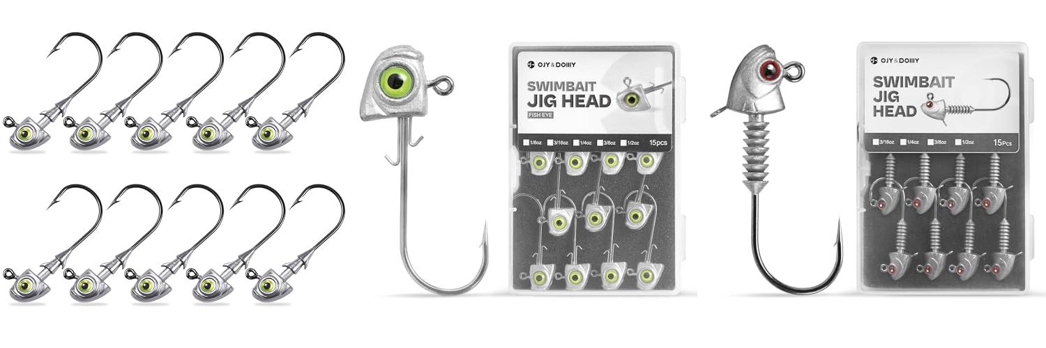 2. OJY&DOIIIY Swimbait Jig Heads with Chartreuse Fish Eye