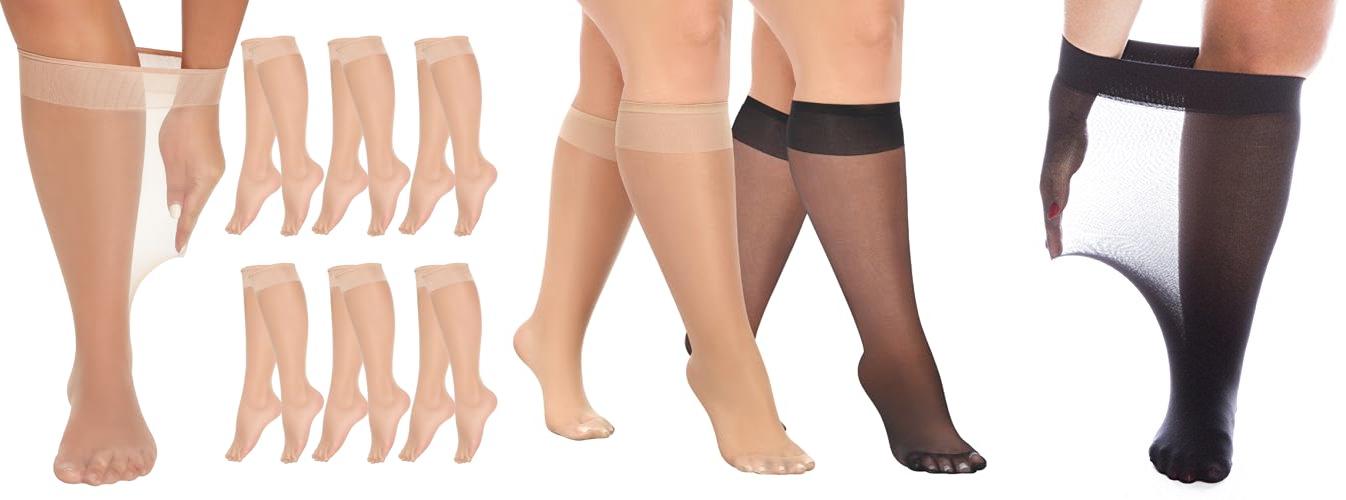 2. MANZI 10 Pairs Plus Size Knee High Stockings for Women 15D Sheer Nylons Socks with Wide Calf