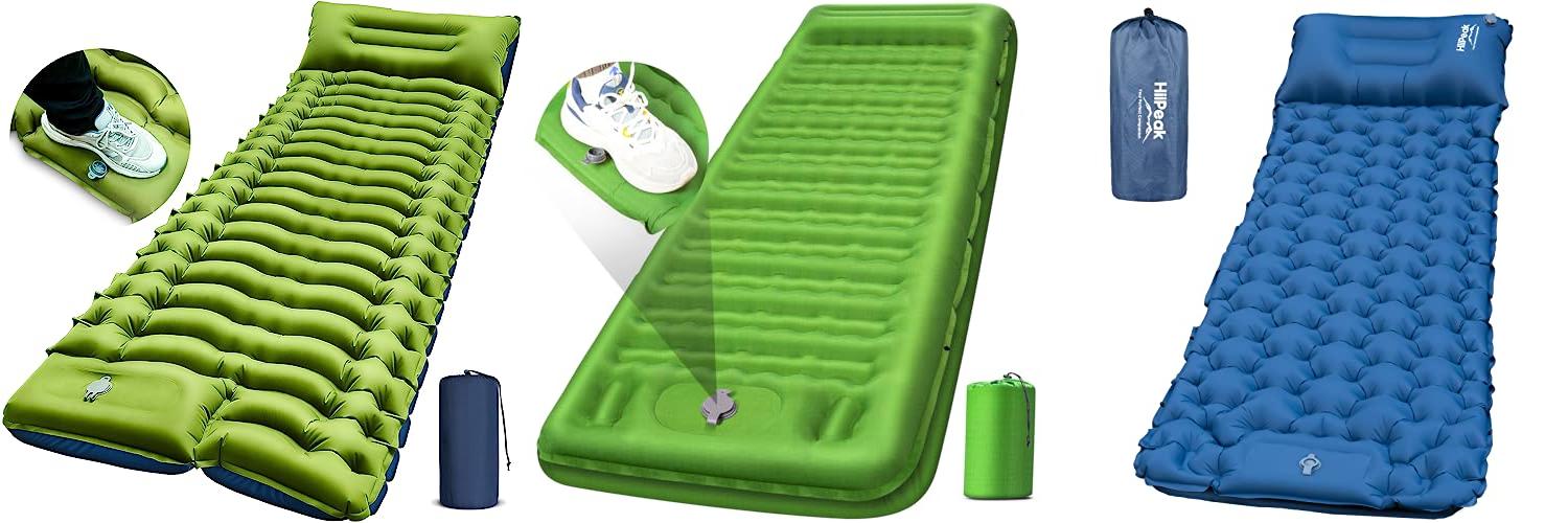 3. HiiPeak Sleeping Pad for Camping- Ultralight Inflatable Sleeping Mat with Built-in Foot Pump & Pillow