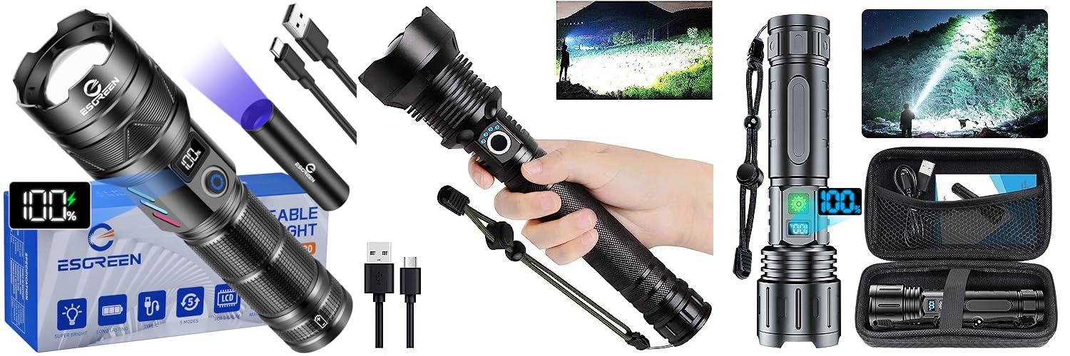 The Esgreen Rechargeable Flashlight is a powerful and versatile tool for anyone who needs reliable light. Its super bright LED can light up a huge area, and it’s built tough to handle rough conditions. Plus, it’s rechargeable and can even power up your phone in a pinch.