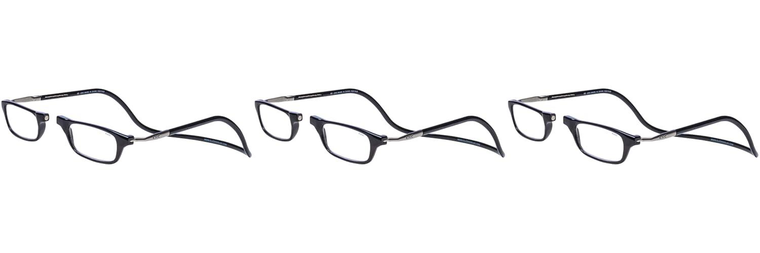Clic Magnetic Reading Glasses for Men or Women, Computer Readers, Original Long (M-L, Black, 2.50 Magnification)