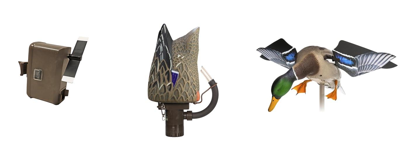 A: Motion decoys have a battery-powered motor. This motor makes parts of the decoy move. This can be wings that flap, a body that bobs, or a tail that wiggles.