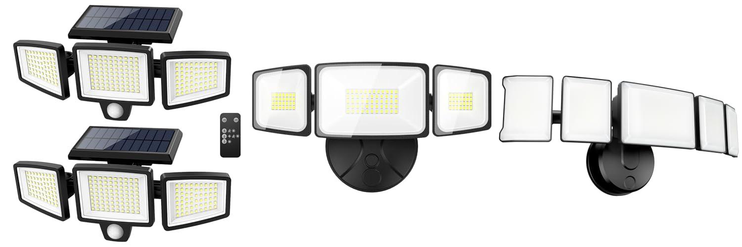 • Wide Coverage: The three adjustable heads can move sideways. The lights have a wide 270-degree view and can sense movement up to 26 feet away, covering a large area.