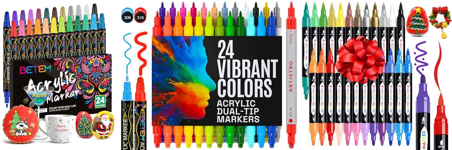 1. Betem 24 Colors Dual Tip Acrylic Paint Pens Markers