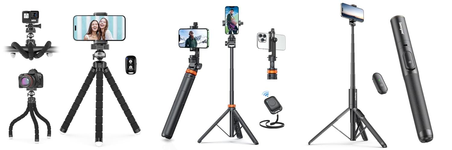 The Sensyne 60″ Phone Tripod & Selfie Stick is a handy tool. It is a selfie stick and a tripod all in one! This lets you take pictures or videos easily. It is small and fits in your backpack. It is great for solo content creators who want to make videos.