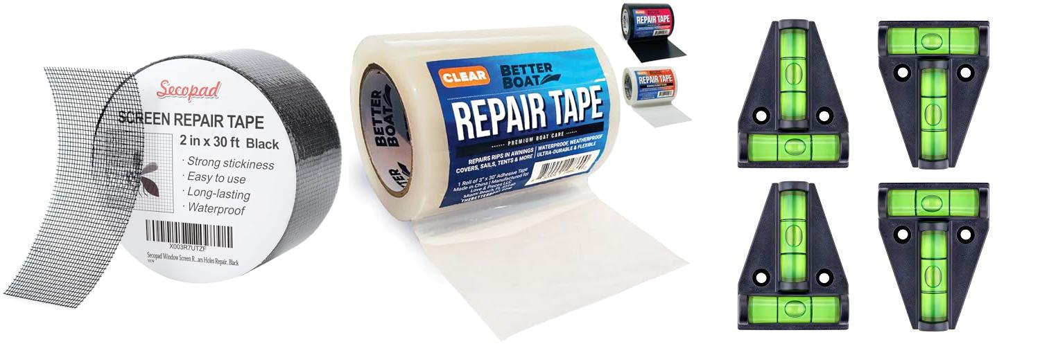 Need to fix a tear on your boat cover or tent? This heavy-duty clear repair tape is your answer! It’s designed to patch up rips and tears on awnings, canvas, tents, and more. This strong tape is waterproof and weather-resistant. It can handle the sun and heat. This versatile tape works on tarps, vinyl, upholstery, and even leather. It’s a must-have for any camper or boater!