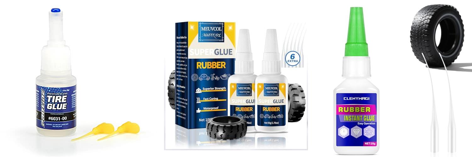 A: While some regular glues might work for a little while, RC tire glues are usually the best choice. They are made to stick to rubber and plastic, and they stay flexible.