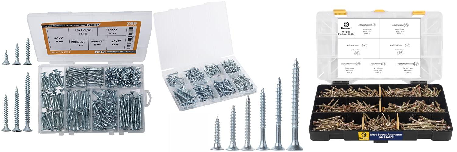 1. JEGONFRI High Hardness Wood Screws Assortment Kit