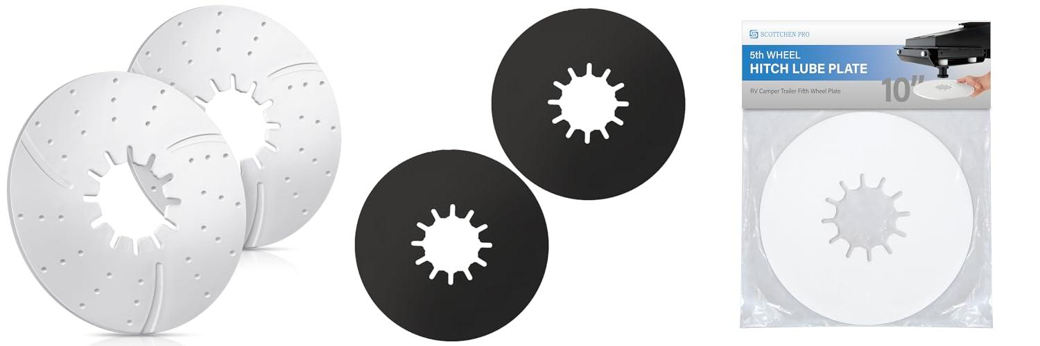 1. Threlaco 2 Pack 5th Wheel Hitch Lube Plate 10 Inch RV Camper Trailer Fifth Wheel Plate Disc Accessories for Trailer Safety Kit