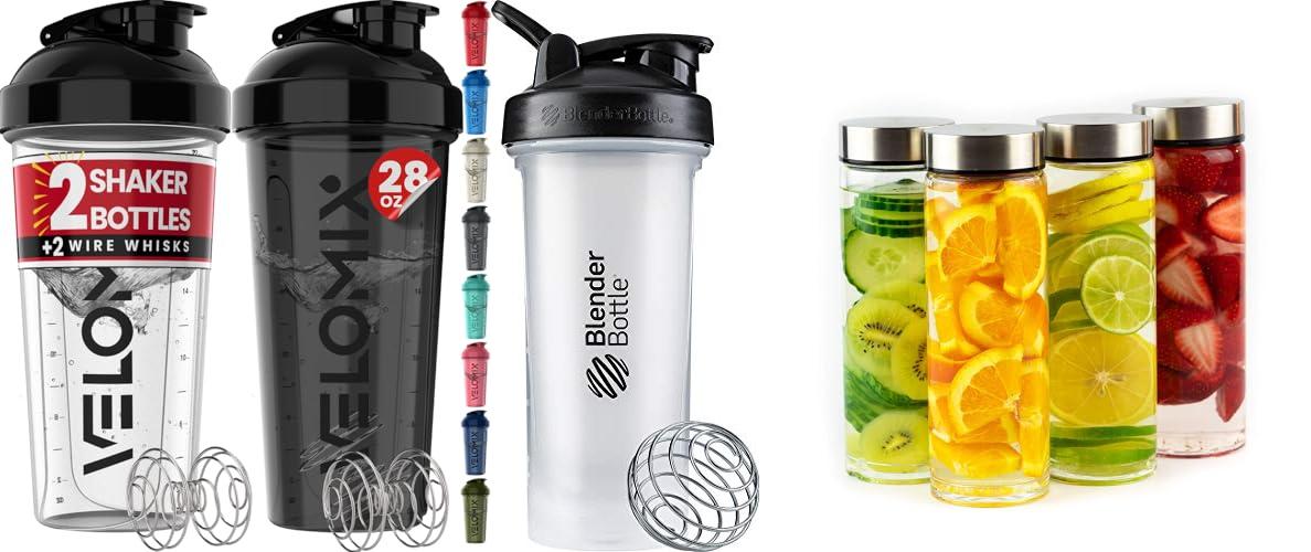 1. VELOMIX -2 Pack- 28 oz Protein Shaker Bottles for Protein Mixes – 2x Wire Whisk
