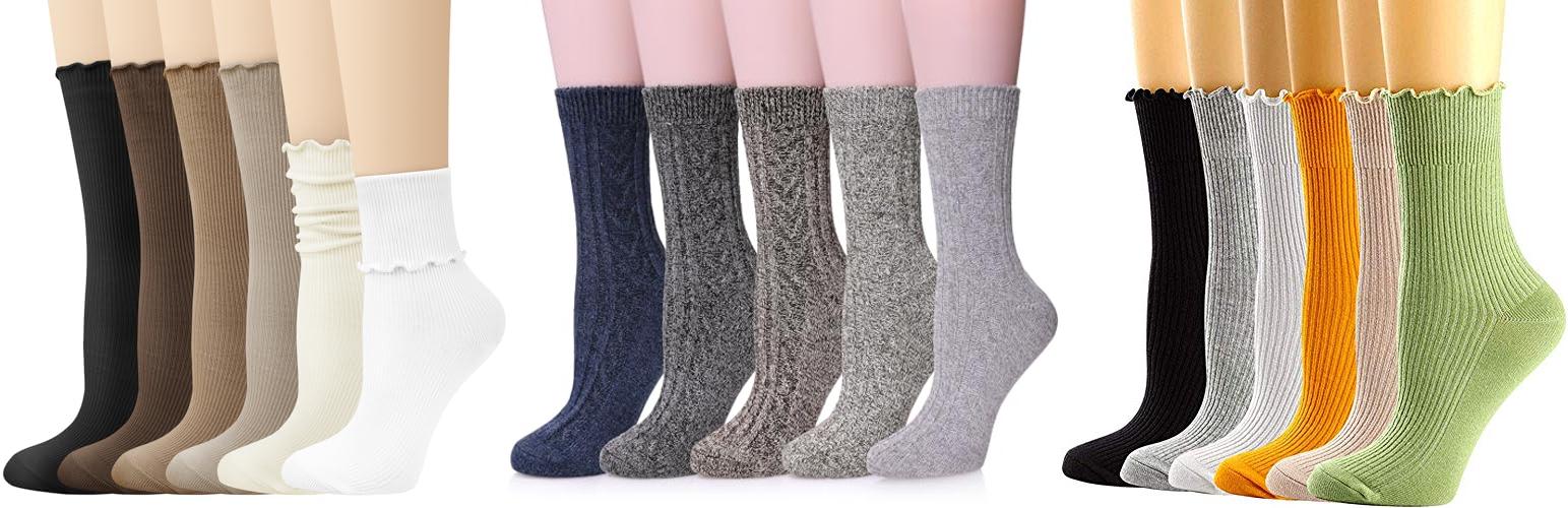 3. Mcool Mary Womens Crew Socks Ruffle Turn-Cuff Dress Socks Casual Cotton Knit Warm Comfy Lettuce High Ankle Socks For Women 6 Pack