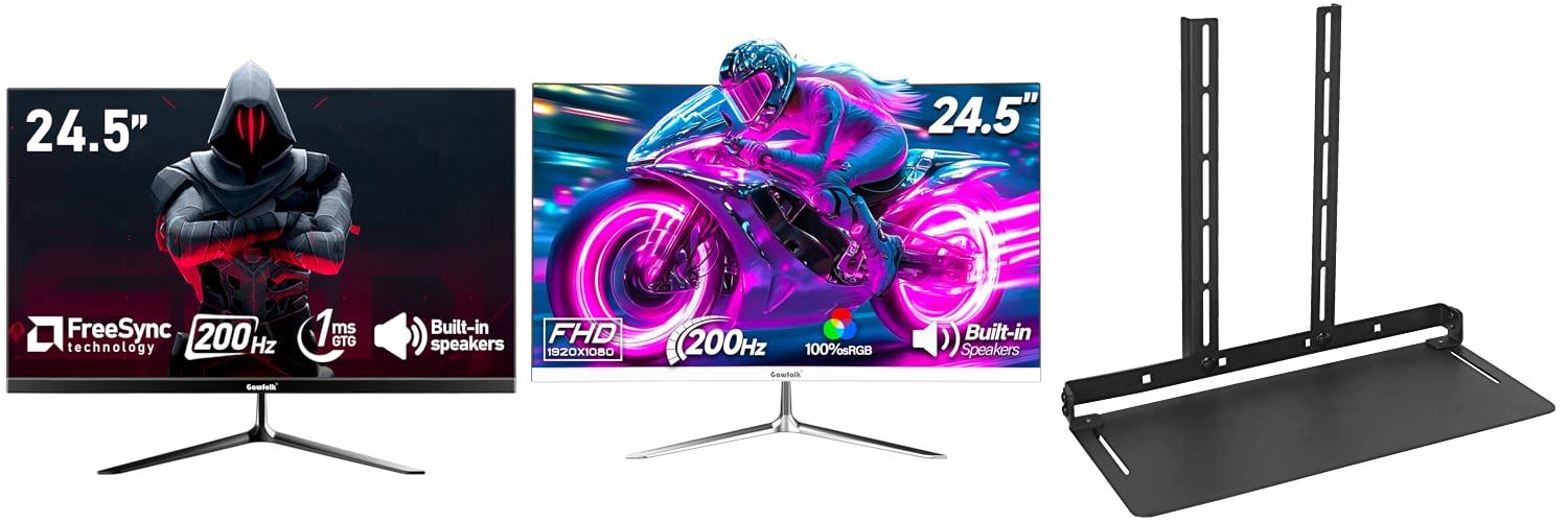 Get ready for an amazing gaming experience with the Gawfolk 24.5 Inch PC 200Hz Gaming Monitor. This monitor boasts a sharp FHD 1080p screen and comes with built-in speakers. Its sleek, bezel-less design and vibrant 99% sRGB color will make your games look incredible. Plus, it’s compatible with wall mounting, making it a flexible addition to any setup.