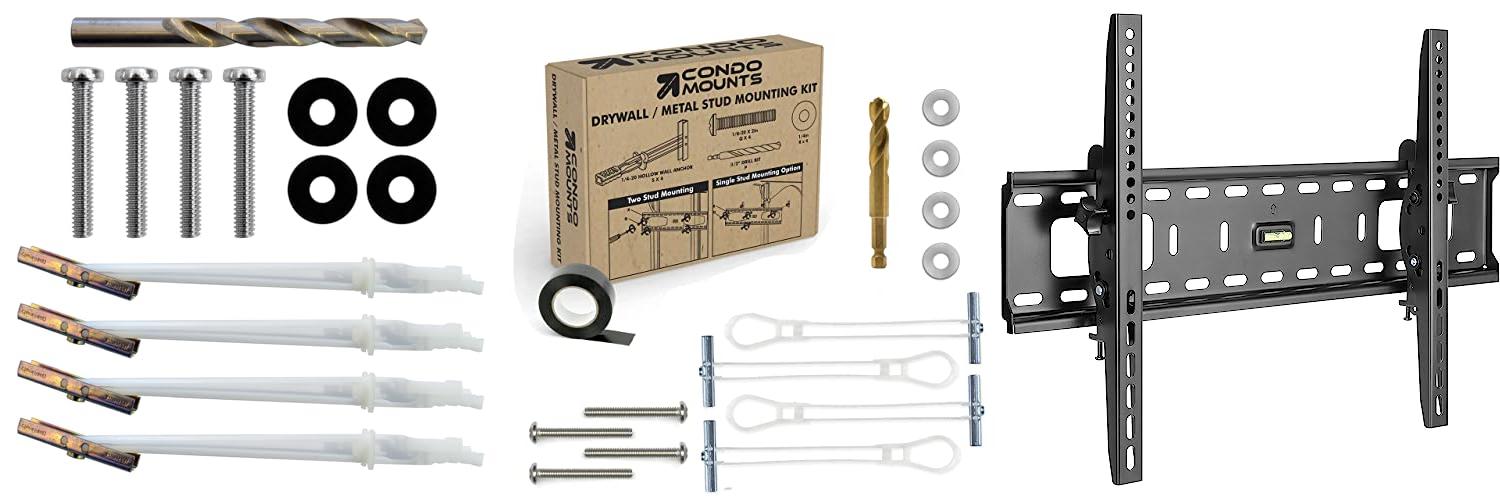 CondoMounts MSK9010 Steel Stud TV Mounting Kit | Wall Mount VESA Mount Screws, Anchors & Titanium Drill Bit | Heavy Duty TV Mounting Hardware Kit Supports 200lbs