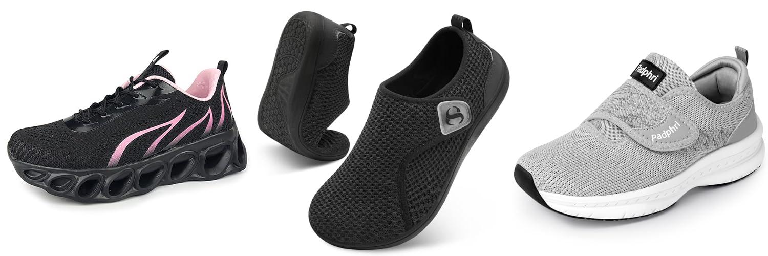 • Excellent Cushioning: Soft padding inside the shoe helps absorb shock. This protects your sensitive feet from hard surfaces. Look for shoes with thick soles and plenty of padding around the heel and ball of your foot.