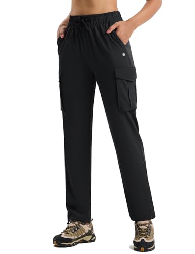 1. baleaf Women’s Hiking Pants Quick Dry Water Resistant Lightweight Joggers Pant for All Seasons Elastic Waist Black Size M